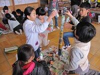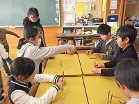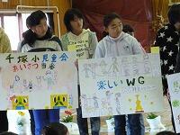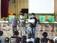 ウォークラリーのあとは、再び体育館に戻り在校生から6年生に向けて“感謝の歌”とプレゼントを贈りました。また、6年生からは千塚小を紹介する手作りの紙芝居をプレゼントしてもらいました。