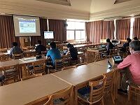 千塚小では、放課後、ランチルームに全教員が集まり、タブレットとiPadを使いながら、その研修を受けることにしました