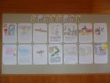 ←廊下の掲示板に掲示された読書感想画(代表作品)。