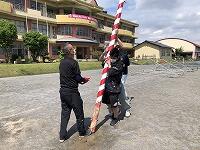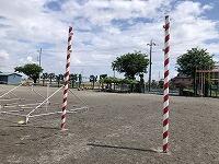 門柱が立つと、入場・退場の雰囲気が出ますねかっこよく入・退場できるように、あと少し、練習を頑張っていきましょう。