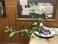 これまでの生け花の写真を掲示にてご紹介していますので、ご来校の際は、どうぞ玄関テーブル上の生け花と、壁面をご覧ください