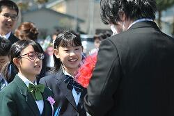 最後の校歌をみんなで歌って、いよいよ退場です。出口で担任の先生からお花をいただきました。