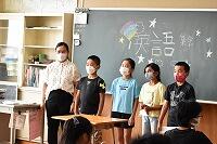 最後に、また大型テレビに映ったALTの先生と5年生と一緒にあいさつをして、集会は終わりました