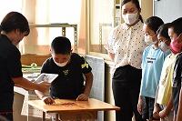 業間の時間に「英語集会」を行いました。今回は、5年生がホスト役です。代表の子どもたちが、ALTの先生と一緒にゲームのルールを説明してくれました周りの5年生も盛り上げてくれました