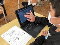 ↑↑ タブレットを用いて、自分の考えを書き込む活動にも、とても慣れている5年生