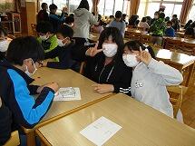 豆つかみ大会では、はしで大豆を一粒ずつつかんで30秒間に何個運べるかを競いました。後で表彰するので楽しみにしていて下さいね。