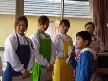 また、子供達が心をこめて書いた感謝の手紙を調理員さんに手渡し、一人ずつインタビューに答えていただきました。調理員さんは、全員、違う色のエプロンをつけており、その仕事内容によって、エプロンを使い分けていることを教えてくださいました。おいしい給食作づくりのポイントや得意な料理、タイの給食事情など、初めて聞く内容に子供達も興味津々でした。