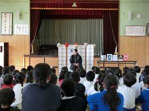 2時間目には、栃木語り部の会の間中一代さんをお迎えし、栃木にまつわる怖い話から面白い話まで、7つのお話を聞かせてくださいました。表情や声で様々な場面を表現してくださるので、みんな語りの世界に引き込まれてしまいました。