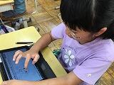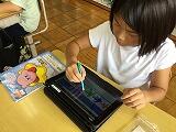 ①ペン先の色を選んだり、書いた文字を消したりと試行錯誤することで次第にタブレットの扱いに慣れていく様子が見られました。