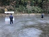 日中暖かかったせいか、スケートリンクの端の方が、少し溶けていました昨年度の反省から、必要な物や動き等の確認をしました。今週末は、気温が上がるという予報ですが、スケート学習の日は、カッチカチに凍っているといいなあと願っています