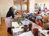 総合学習での地域の宮ねぎを調べる学習の一環として、実際に、宮ねぎを使った料理を作り、おいしくいただきました