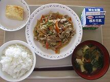 今日の給食のメニューは、「ご飯 牛乳 栃木市産豚肉のスタミナ焼き 厚焼卵 小松菜と生揚げのみそ汁」でした。