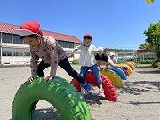 ↓↓しばらく「8の字跳び」をしていましたが、誰かの提案で、「ゆうびんやさん」になりました違う跳び方や遊びをしたいときは、一緒に遊んでいるみんなに、声を掛けられるといいですね。みんなが賛成してくれたら、跳び方を変えたり、遊びから抜けたりすることも、仲よく過ごすための大切な学びですね