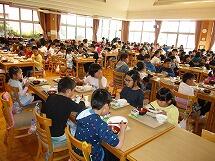調理場では、約450枚も焼きます。調理員さんが、一枚一枚、ていねいにバターをぬって焼き上げました。子ども達のうれしそうな笑顔を見ると、作っている私たち調理スタッフにも笑みがこぼれます。みんなうれしそうですね~!