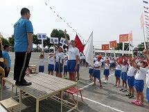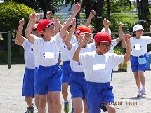 5月26日(土)、いよいよ運動会当日!お天気に恵まれ、欠席者もなく、最高のスタートです。「勝利に向かって 全力疾走 仲間と共に 最高の運動会へ」のスローガンの下、毎日練習を重ねてきた子どもたち。笑顔一杯で開会式に臨みます。応援団も気合い十分!大きな声で選手宣誓を行いました。
