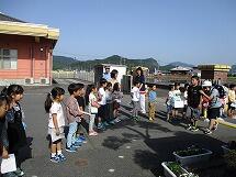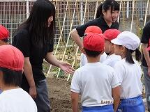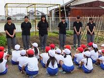 2年生の生活科で野菜を育てます。毎年、池澤様にお世話になって、苗の植え方、野菜の育て方等を御指導いただきます。学校が休みの間に、2年生のために畑を整備し、準備をしてくださいました。ありがとうございます。この畑に、なすやきゅうり、オクラ等を植えて
