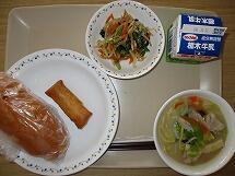 今日の給食のメニューは、「ミニアップルパン 牛乳 ちゃんぽん麺 春巻き 中華サラダ」でした。