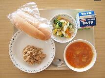 今日の給食のメニューは、「コッペパン 牛乳 ツナサンドの具 ブロッコリーとキャベツのサラダ ミネストローネ」でした。