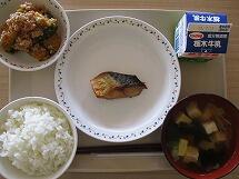 今日の給食のメニューは、「ごはん 牛乳 サバのスタミナ焼き かぼちゃのそぼろあんかけ ゆばのすまし汁」でした。