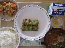 今日の給食のメニューは、「ごはん・とち介味付けのり 牛乳 栃木市産豚肉のソースカツ ごまあえ にらとゆばのみそ汁」でした。