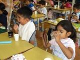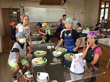 今日の夏野菜カレーには、栃木市産の豚肉、にんにく、玉ねぎ、なすが使われています。栃木市では、おいしい食材がたくさんとれますね。生産者の方に感謝の気持ちをこめて残さず食べましょう。