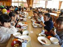 また、今日は異学年交流給食として、いつもと違うメンバーで給食を食べました。1~2年生は、優しいお兄さん、お姉さんと一緒に給食が食べられてうれしかったですね。上級生は、かわいい下級生の面倒をよくみてくれましたね。みんなで食べる給食はとてもおいしいです。異学年交流給食は、明日もあります。楽しみにしていて下さいね。