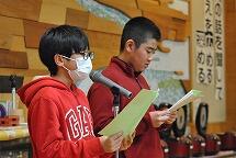 好きな詩を一編選び、全校生の前で『語り』を行っています。