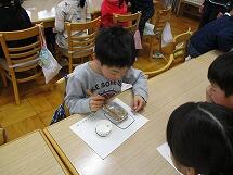 正月遊びに挑戦しました。みんなで相談して遊ぶものを決めました。目隠しをして福笑い、みんなで読み手を交換しながらのかるたとり。楽しく取り組むことができました。