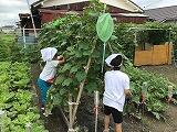生活科で育てている野菜(きゅうり・なす・ピーマン等)の収穫をしています。「大きなきゅうりが取れたあ。」と大喜びの2年生。おうちに持って帰り、「つけものにしました。」「やわらかくて、おいしかったです。」と嬉しそうに話しています。