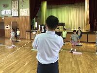 画像は、3・4年生の様子です。途中、「うがい・水分補給・休憩」の時間をとるなど、熱中症予防対策も万全に、授業を進めています了解