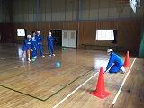 6年生は体育の授業で、ゴールボールの体験をしました。
