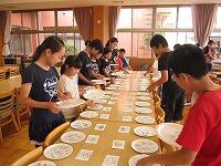今日はあいにくの雨模様ですが、朝ご飯を美味しく食べて、午前中の活動のマリンアートスタートしました!