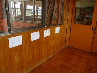 学校では、給食委員会の子どもたちが描いたポスターを、ランチルーム前のろうかに貼りました。