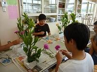 初めに生け花の歴史についてお話を聞きました。その後一人一人丁寧に教えていただき、みんな一生懸命取り組んでいました。さわやかなすばらしい作品が図書室前に飾られています。ぜひ、ご覧ください。