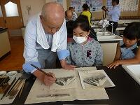 水墨画では、墨の濃さを変えて表現し、かぶ・富士山などを描きました。みんな真剣な表情ですね!いろんな技法があったのでびっくりでした。こちらも展示しておきますのでご覧ください。