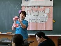 1年生の親子を対象に、歯科衛生士さんを講師に迎え、「むし歯ゼロ教室」を開催しました。