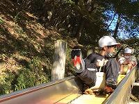 豊かな自然の中で、75mのロングすべり台に乗ったり、アスレチックで遊んだりしました。