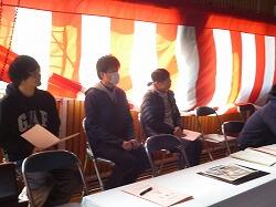 さあいよいよ本番です!・・・でも、一度も練習していなかったので、まずリハーサル。「失敗してもいいから堂々と・・。」みんなが見守る中、集中して話を聞いていた卒業生です。