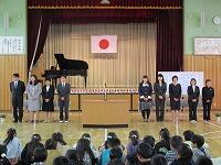 ↑ 1年生はまだ校歌を覚えていないので、上級生の歌声に耳を傾けていました