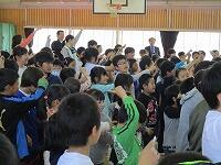 ↑ 次に、運営委員会による「ちづかしょうをもっとよく知ろう」のスライドショーとゲーム(もうじゅうがり、じゃんけん列車)がありました。いろいろな学年の人と交流し、1年生もとても楽しそうでした