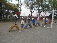 生活科の時間に、1年生が遊具で安全に遊べるように2年生が遊び方を教えて、仲よく遊びました。2年生は、ブランコで背中を押したり、タイヤ跳びで手をつないで落ちないように気を付けたりして、優しく教えることができました。