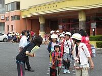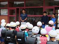 水曜日は一斉下校です。交通安全担当職員の指導の後、隔週で、「交通安全誓いのことば」と「いかのおすし」を、6年生のリードで全員で確認します。年間を通して実施しています。