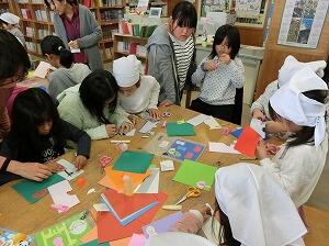 昼休みには【切り絵教室】を行いました。地域コーディネーターの方々にもお手伝いいただきながら、作りたい切り絵を真剣に作ることができました。