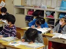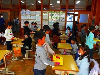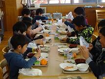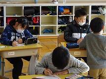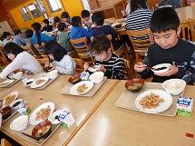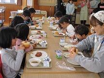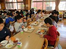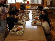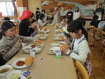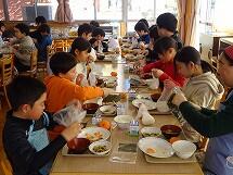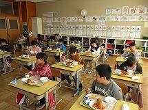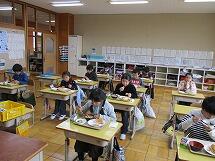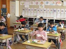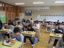 また、インフルエンザが流行しており、欠席者の多い3年と6年は、他の学年への感染を防ぐため、いつものランチルームではなく、それぞれの教室で給食を食べました。先生方に協力していただき、食器や給食の食缶は階段をつかって運び、オープンスペースで配膳をしました。給食を食べる時は、グループを作らず、全員前を向いて食べています。おしゃべりせず、静かに給食を食べていました。早く元気になって、またみんなで一緒にランチルームで給食が食べられるといいですね。