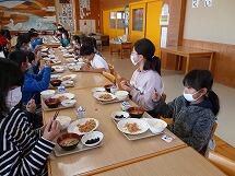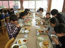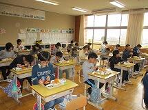 今日から、給食週間です。給食委員から給食の始まりの話がありました。明治22年山形県鶴岡市のお寺の小学校で、握り飯・漬け物だったそうです。また交流給食が始まりました。違う学年の児童と一緒に給食をいただきます。