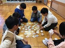 子どもたちは友達が作ってきたカルタをみて「上手だね」「おもしろい」などと関心しながら、楽しく遊ぶ事ができました。