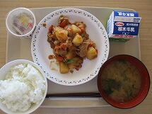 今日の給食のメニューは、「ごはん 牛乳 納豆 ピリ辛肉じゃが 大根のみそ汁」でした。