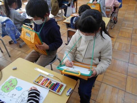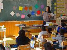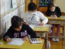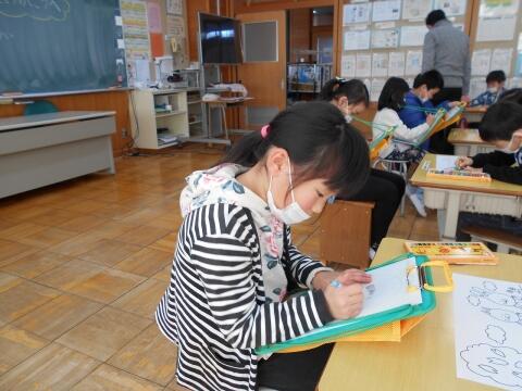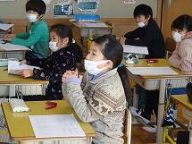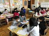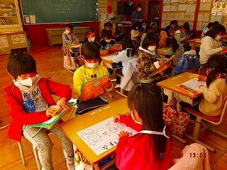 4月から1年生になる友達が、2年生教室に来てくれました。2年生は、きりなしうたの詩の群読をしたり千塚小学校の紹介をしたりしました。