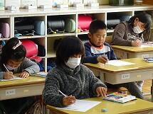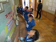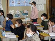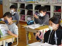 学校では、保健安全委員会の児童の呼びかけのもと、換気や教室の消毒、うがい手洗いの徹底など予防強化中。