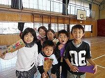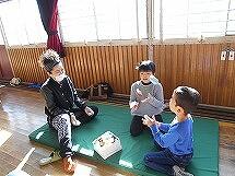 生活科「ふゆをたのしく」の学習で、昔の遊びをしています。今日は、保護者の方に御協力いただき、体育館でこまやはねつき、折り紙、おはじき、けん玉、あやとり、お手玉等を体験しました。最後に、お礼をかねてダンス「YMCA」を元気に踊りました。